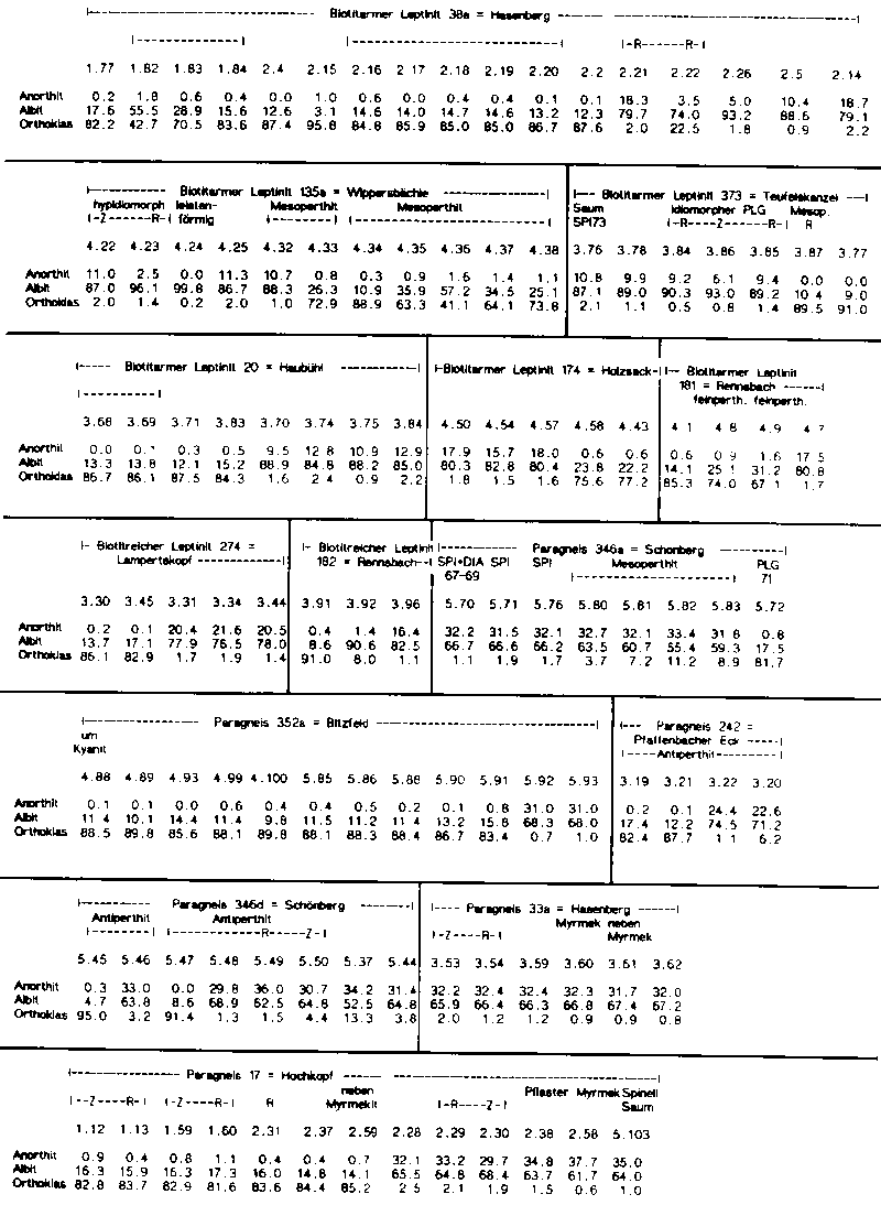 Tab. 15: Feldspat-Endglieder in Mol-% nach Mikrosonden-Analysen verschiedener Proben