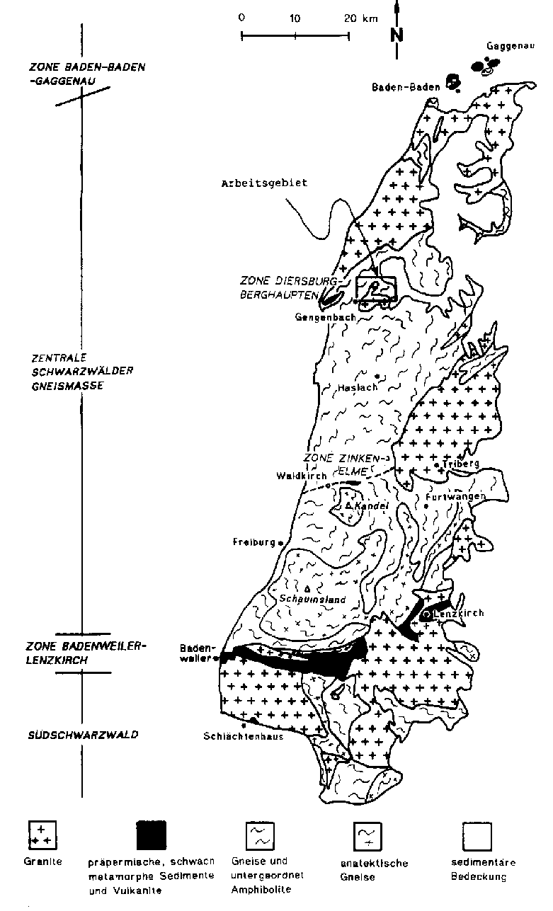 Der Schwarzwald ist Teil des innervaristischen Kristallingürtels. Sein östliches Nachbargebiet ist die Böhmische Masse, nach Westen schließen sich Vogesen und das Massif Central an. Als mögliche Lokation der Kontinentalen Tiefbohrung erfuhr der Schwarzwald anfang der achtziger Jahre eine gesteigerte Aufmerksamkeit, die zu einer Fülle neuer wissenschaftlicher Beobachtungen und Ergebnisse führte. Insbesondere wurden verschiedene Modelle für die tektonische Entwicklung des Schwarzwalds vorgelegt (FLÖTTMANN 1988, EISBACHER et al. 1989), die eine varistische Prägung deutlich herausstellten. Andere Autoren (zuletzt WIMMENAUER et al. 1989) betonen den prä-varistischen Charakter des kristallinen Schwarzwalds. Die bisherigen Kenntnisse über das Grundgebirge des Schwarzwalds lassen sich wie folgt zusammenfassen: