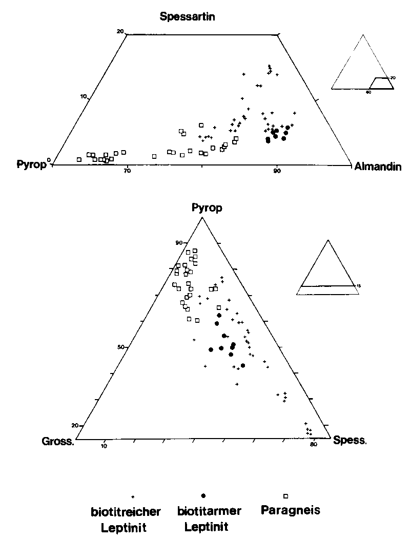 biotitreichen Leptinite bilden ebenfalls ein eigenes Feld mit intermediärem