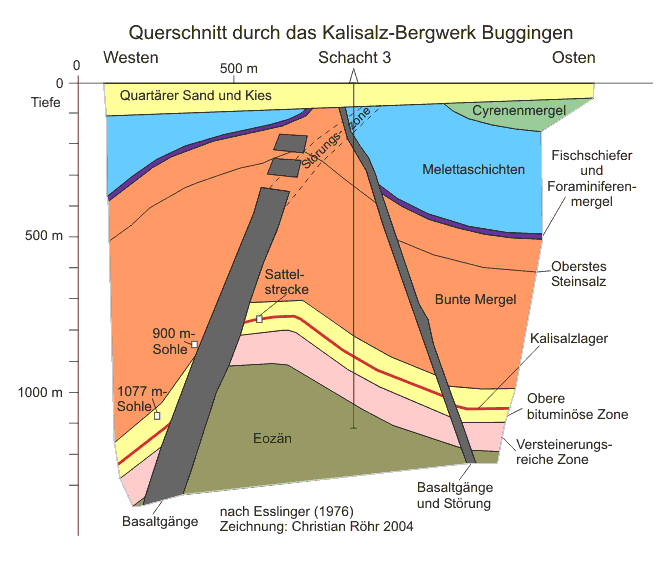 Abb. 1: Querschnitt durch das Kalisalz-Berwerk Buggingen, das 1973 stillgelegt
